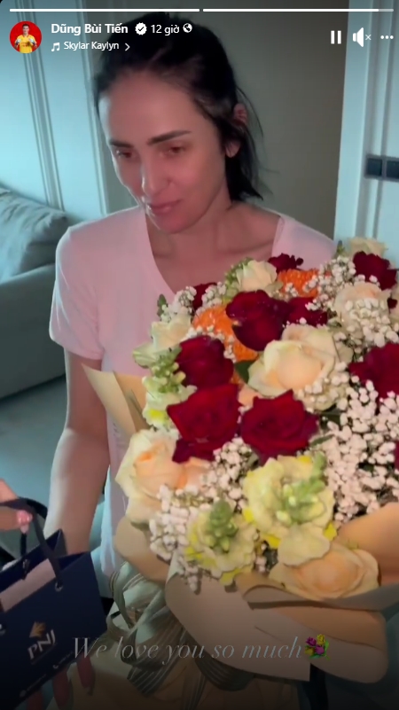 Trong Ngày của Mẹ vừa qua, Bùi Tiến Dũng cũng tặng hoa và quà cho mẹ Dianka.