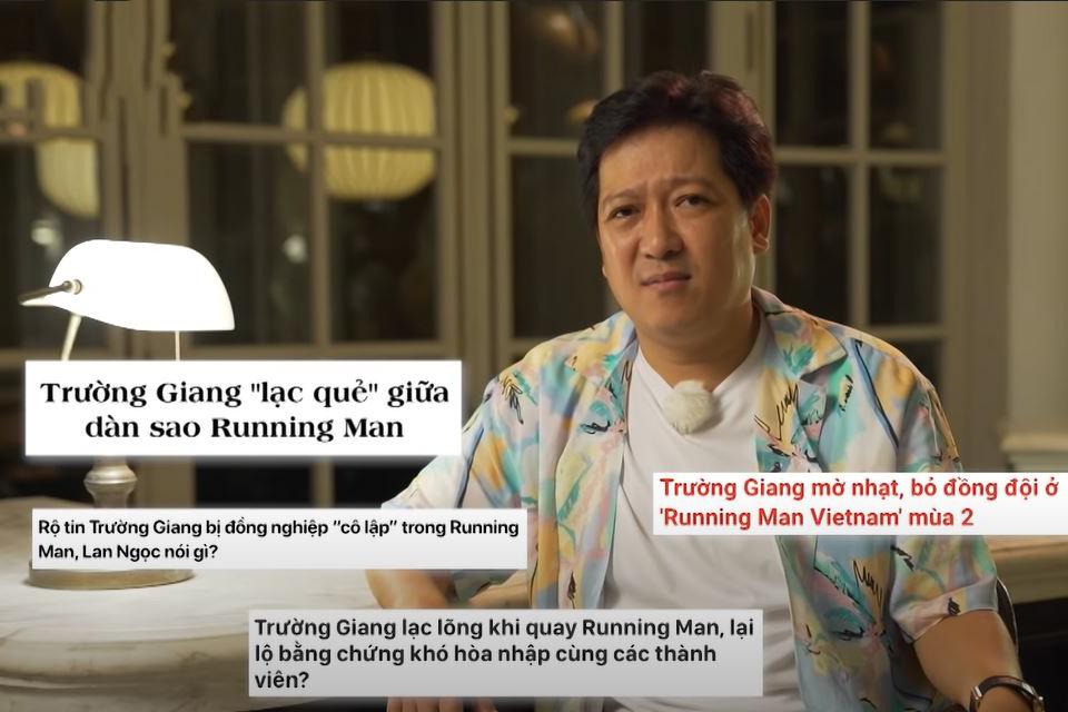 Đây lần đầu tiên, nghệ sĩ Trường Giang chia sẻ về những ý kiến trái chiều xoay quanh mình khi tham gia Running Man Vietnam mùa hai (Chơi là chạy) và mối quan hệ với Trấn Thành.